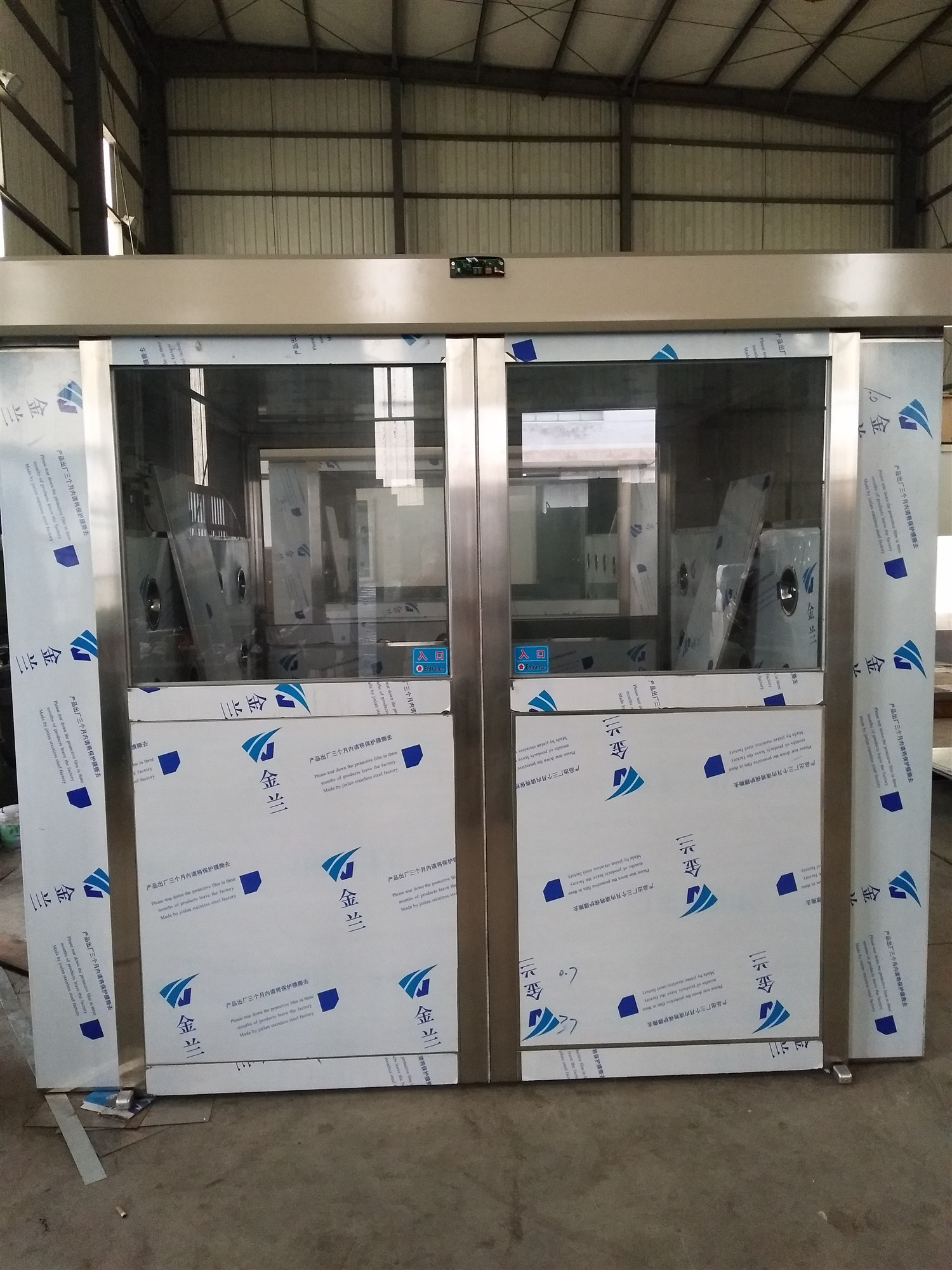 自動門風淋室能完成了潔凈室的全面自動化,門體自動開啟和關閉,無需用手推拉。潔凈室入口門的開閉便利、無接觸,人員及貨物進出非常流利高效,進步了消費工藝和自動化程度。比方關于請求進出房間不能用手推拉的無接觸房間,又比方雙開的物料通道,有些場所裝平移自動門空間不夠,那么采用本全自動感應開門系統,在非接觸式感應器的配合下,可便當完成。既可儉省空間、減少投資,密封效果又好。